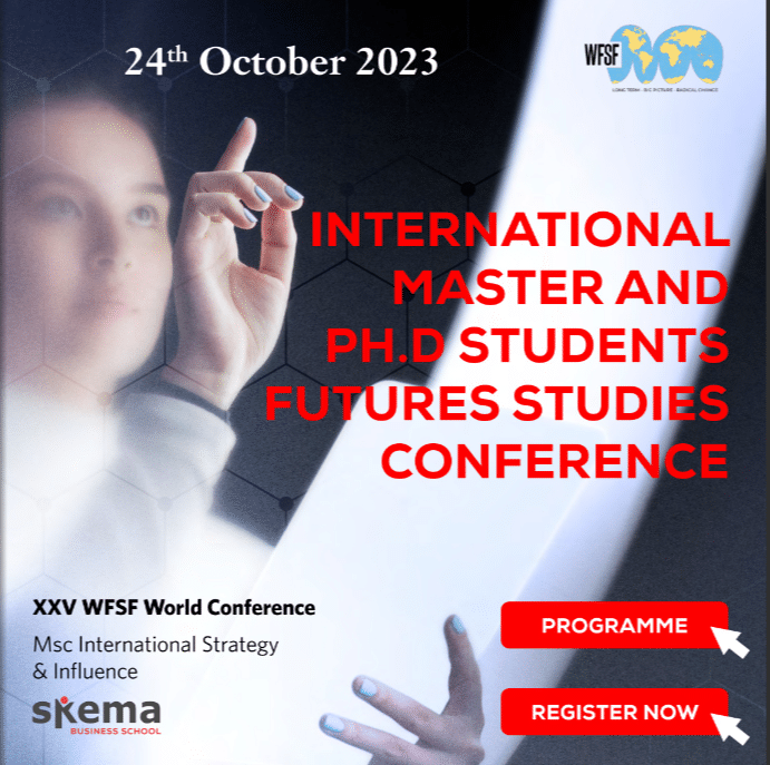SKEMA’s MSc International Strategy and Influence and the World Futures Studies Federation are organising an International Master and PhD Students Futures Studies Conference on October 24th, 2023, at the SKEMA Grand Paris campus.